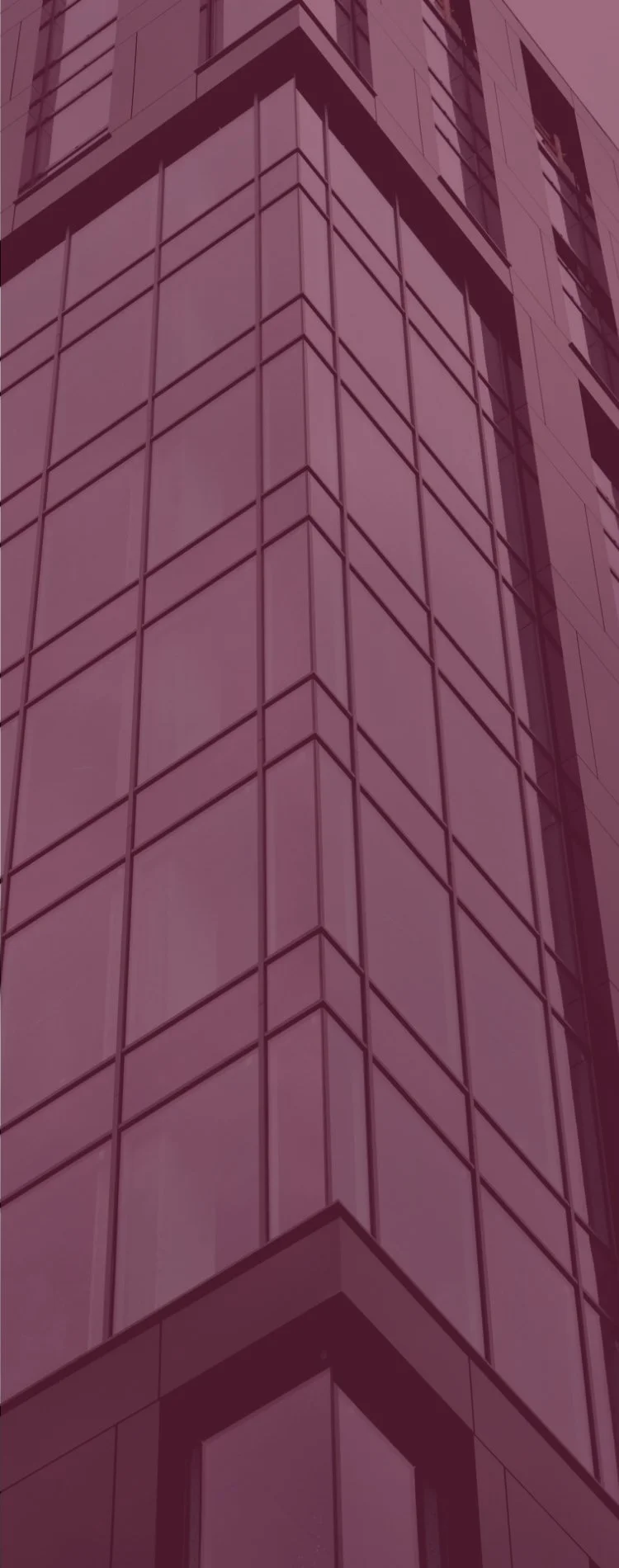 View of a modern glass building facade with multiple rectangular windows, seen from a low angle.